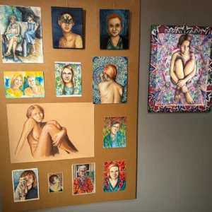 Na wystawie znalazły się prace z okresu nauki w Liceum Plastycznym w Koszalinie, a także z pierwszego roku studiów na Akademii Sztuki w Szczecinie, które Maria rozpoczęła w 2022 roku. Zaprezentowano również dzieła tworzone poza programem nauczania – osobiste, intuicyjne, często bardzo emocjonalne.
